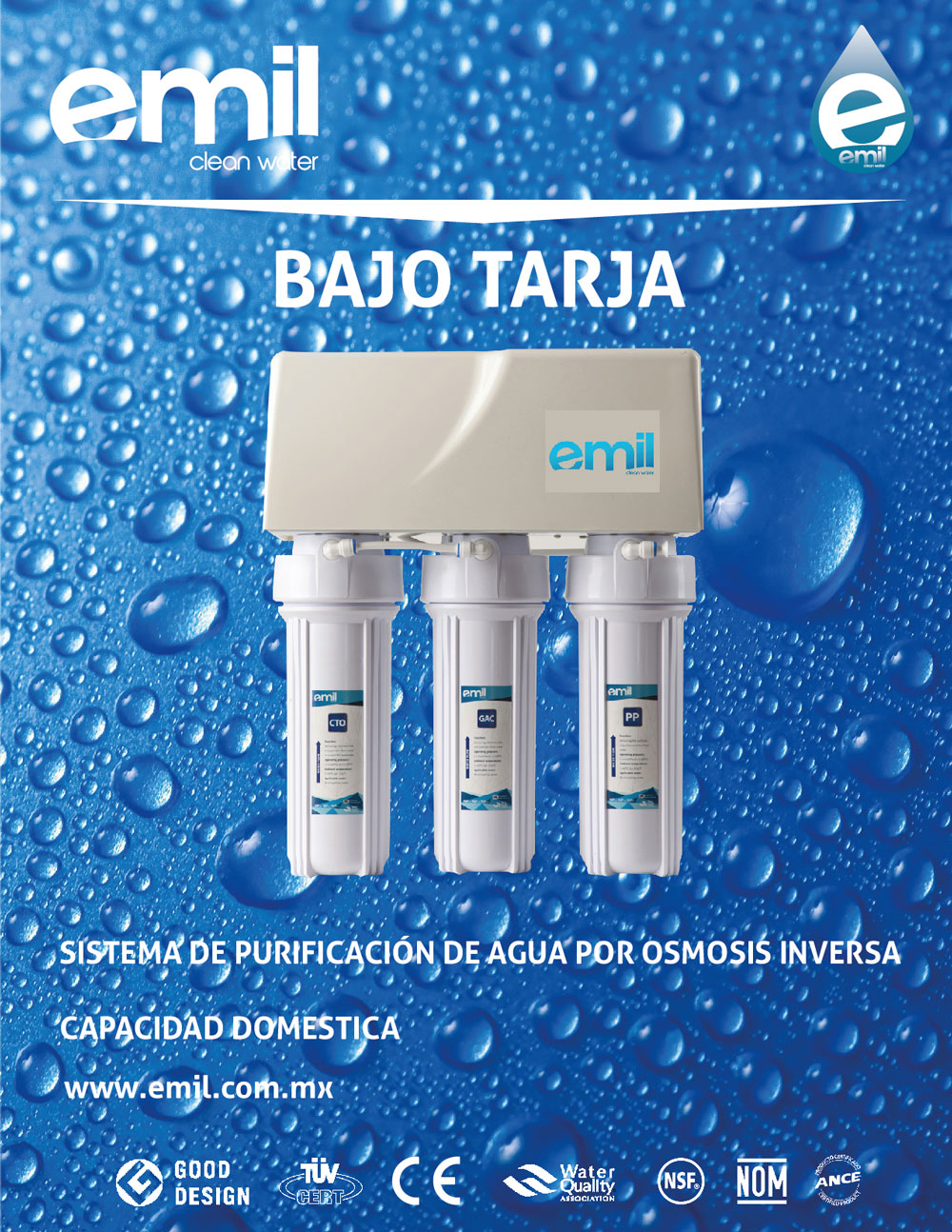 Emil Clean Water utiliza el sofisticado proceso molecular de ósmosis inversa el cual se fuerza al agua a través de una membrana semi-permeable con porosidad de .0001 micras desde una solución más concentrada en sales disueltas u otros contaminantes a una solución menos concentrada, mediante la aplicación de presión.